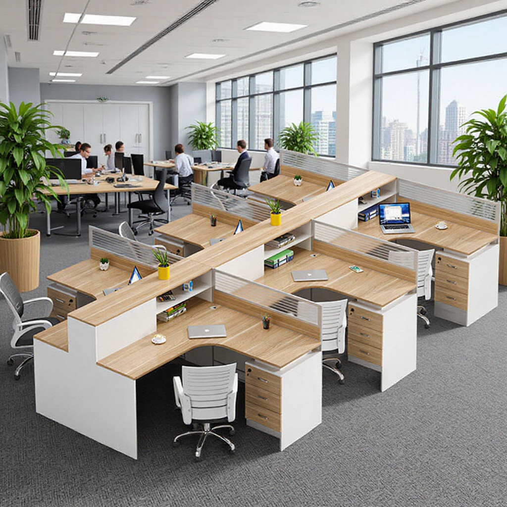 Meja kantor, pemegang kartu, layar modern sederhana, layar kerja, tipe L, Meja Staf, 4/6 orang, Meja perabot kantor, dan kursi kombinasi
