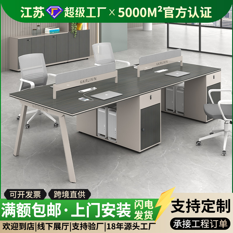 Meja dan kursi kantor empat kursi Staf modern kombinasi ganda meja komputer grosir meja tulis enam kursi dengan layar