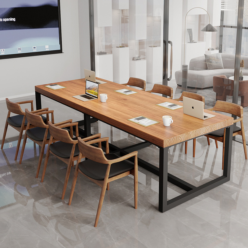 Meja panjang kayu polos, meja konferensi dan kursi kombinasi desktop komputer meja negosiasi minimalis modern
