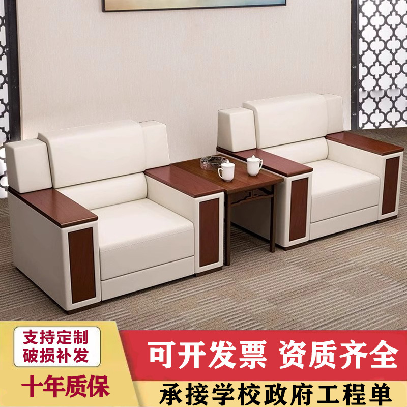 Sofa Kain Bisa Dibongkar dan Dicuci Ruang Pertemuan Sofa Kantor Meja Kopi Kombinasi Warna Putih Sofa Penerimaan VIP Tiga Orang Tunggal