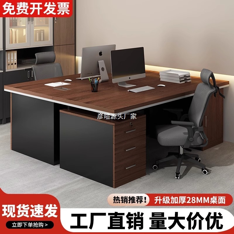 Kombinasi meja dan kursi bos kayu solid meja komputer keuangan dua orang tatap muka kantor manajer meja presiden dengan lemari samping