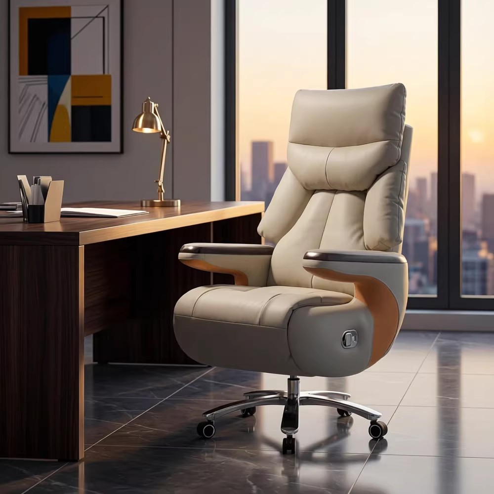 Kursi Kantor Kursi Bos Kulit Asli Bisa Berbaring Listrik Kursi Bos Isi Ulang USB Kursi Bos Bisnis Premium Mewah Ringan
