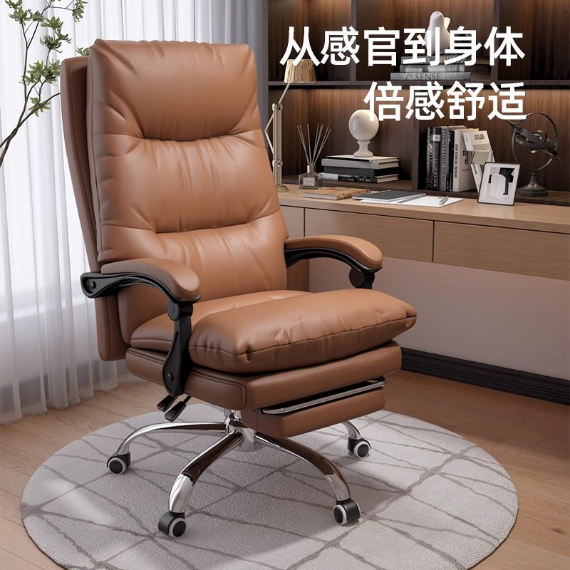 Kursi kulit asli, kursi komputer rumah, nyaman, dudukan panjang, kursi kantor, pijat, kursi sandaran