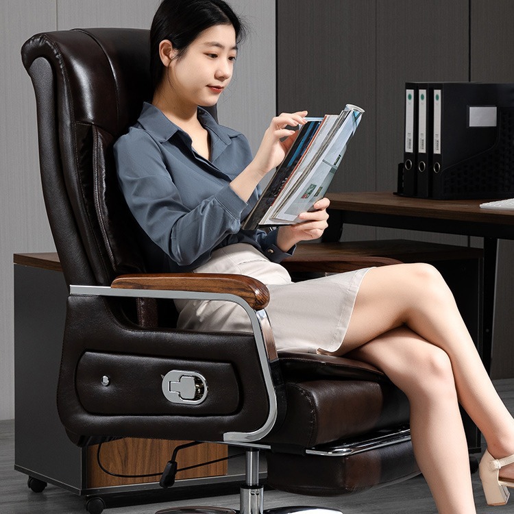 Kursi Bos Kulit Asli Bisnis Kursi Kantor Presiden Kursi Pijat Kulit Sapi Kursi Kelas Besar Kayu Solid Bisa Berbaring Kursi Komputer Rumah Tangga