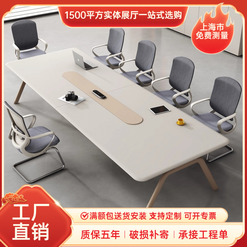Shanghai Sederhana Suasana Kulit Panggang Kerajinan Papan Meja Konferensi Meja Negosiasi Pertemuan Kantor Meja Meja Penerimaan Kursi Kombinasi