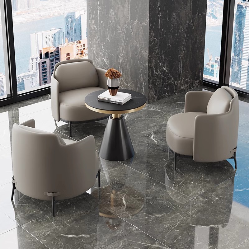 Kombinasi Sofa Kantor Meja Kopi Modern Sederhana Penerimaan Tamu Bisnis Seni Kulit Kecil Tiga Orang Kantor Produk Baru
