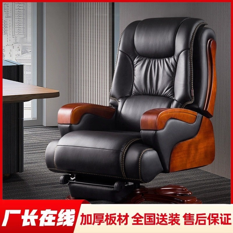 Kursi Bos Kulit Asli Kursi Kantor Kayu Solid Kursi Putar Naik Turun Kursi Komputer Komersial Nyaman Bisa Berbaring Rumah Tangga Kantor