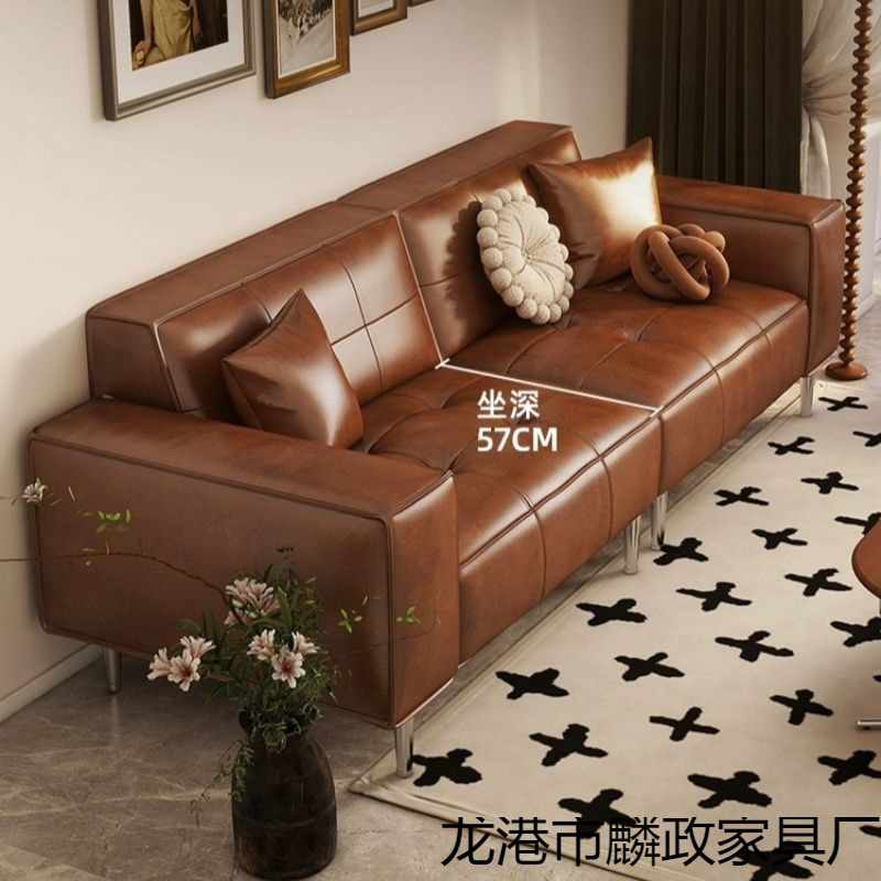 Sofa Ukuran Kecil Kulit Parafin Retro Gaya Prancis Model Pertengahan Sofa Santai Lurus Tiga Orang Ganda Ruang Tamu Ruang Tamu