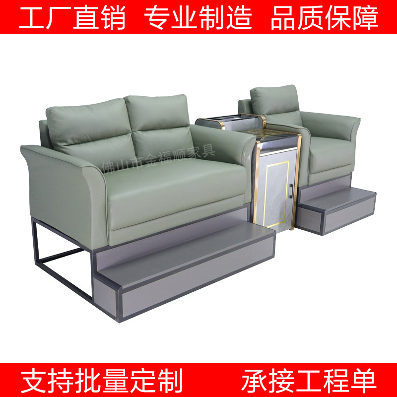 Sofa Kantor Minimalis Modern Tiga Orang Ruang Penerimaan Bisnis Area Tamu Sofa Kantor Stainless Steel Kombinasi Meja Kopi