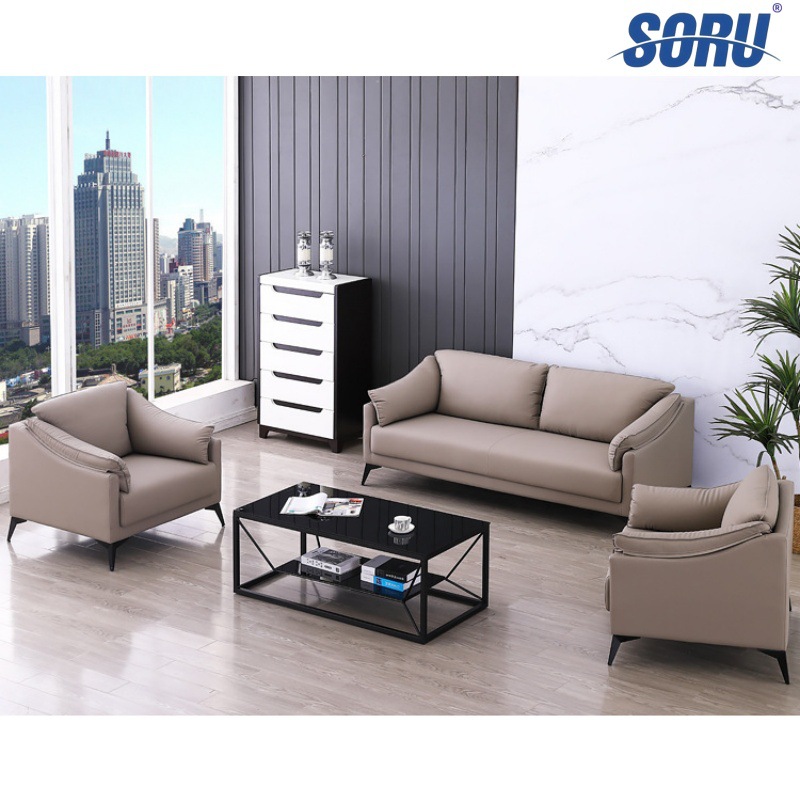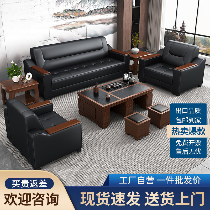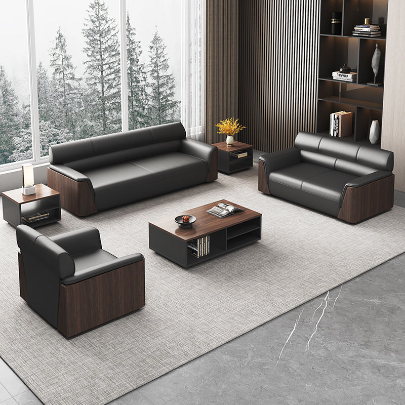 Sofa Kantor Sederhana Bisnis Modern Penerimaan Tamu Santai Tiga Orang Meja Kopi Set Kombinasi Seni Kulit Grosir