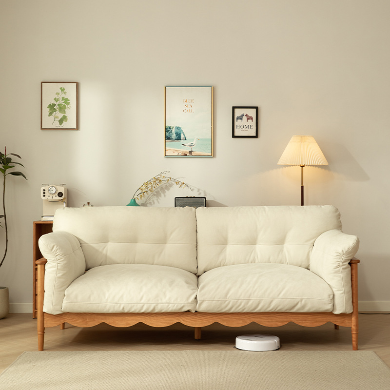 Sofa kayu padat gaya Jepang, sofa kain teknologi baru Nordik kayu Sakura sederhana