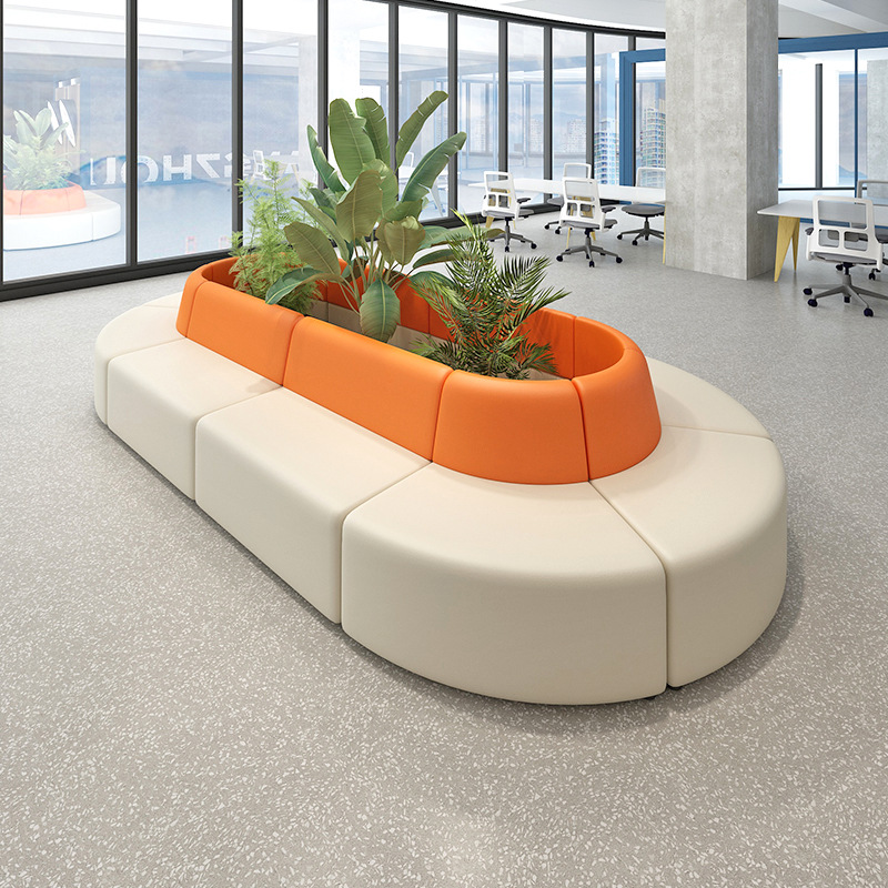 Ruang kantor hotel bisnis kombinasi sofa multi-orang di sudut kantor area tunggu area penerimaan area konferensi
