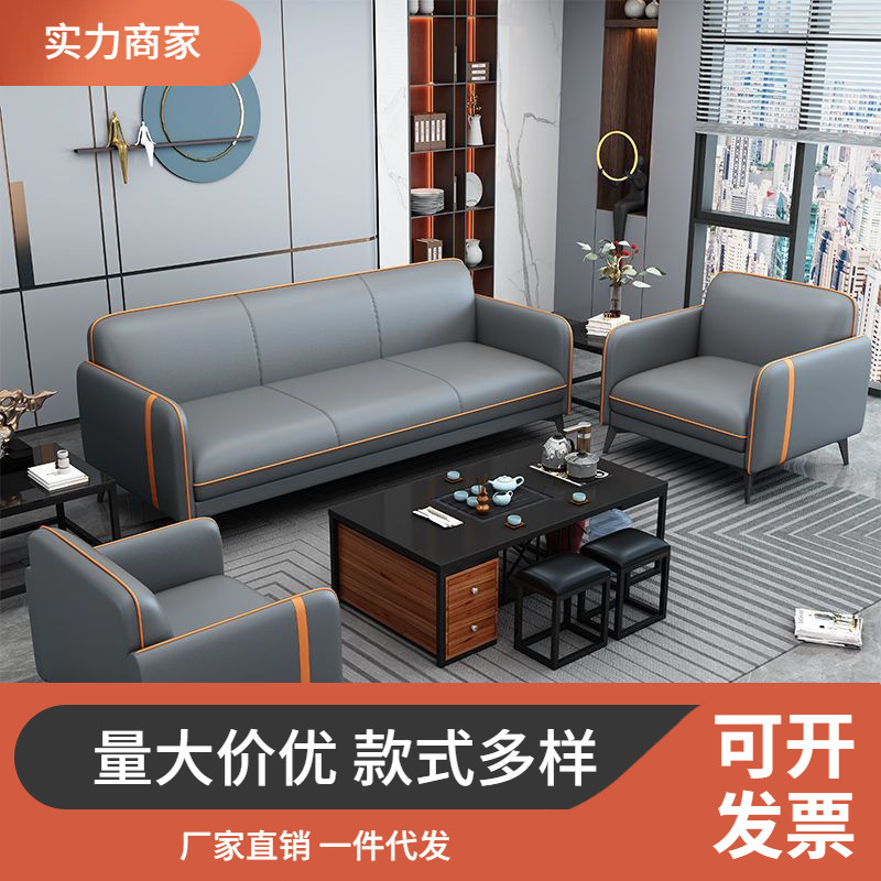 Sofa Kantor Set Meja Kopi Kulit Kucing Bisnis Kantor Kecil Tiga Orang Penerimaan Tamu Sederhana Modern