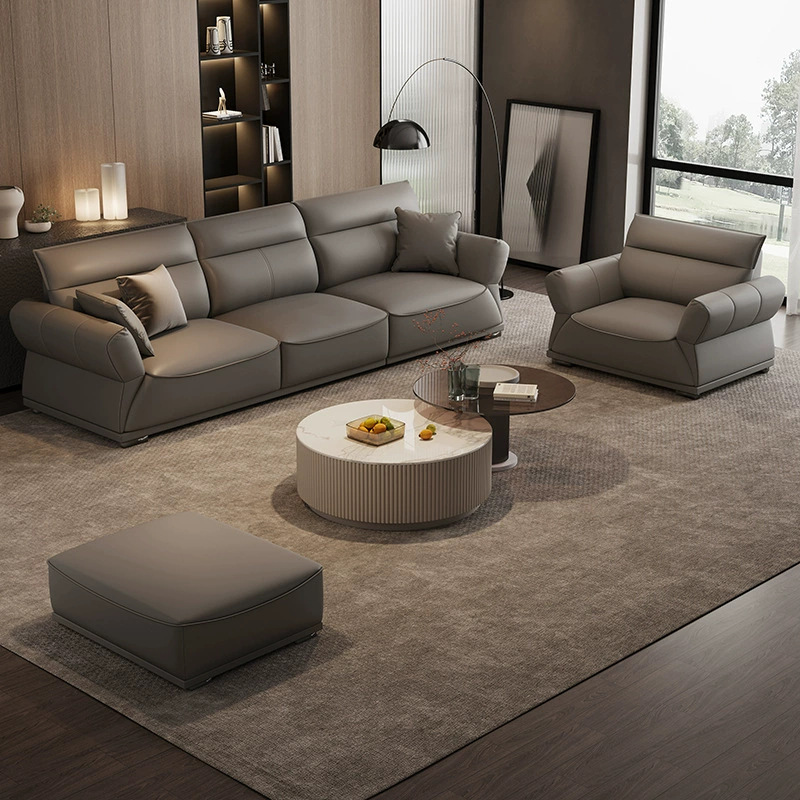 Sofa silikon serat mikro, sofa silikon modern Italia garis lurus ruang tamu tiga kursi lapisan pertama kulit sapi