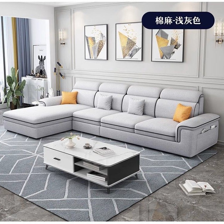 Sofa Seni Kain Sederhana Modern Ruang Tamu Eropa Utara Tipe Rumah Kecil Kain Teknologi Cakar Kucing Sofa Selir Baris Lurus Tanpa Cuci