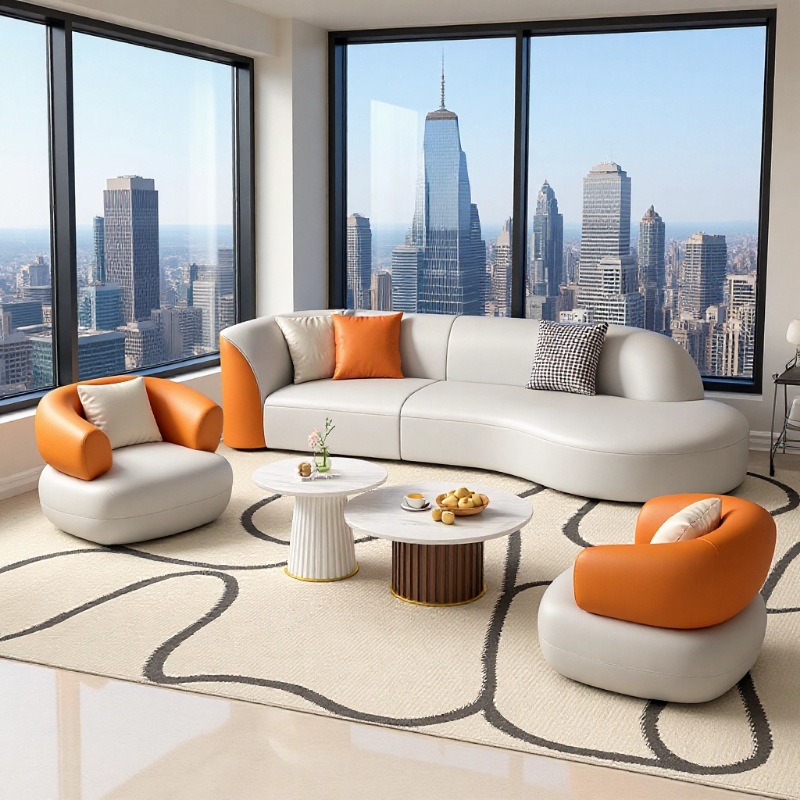Sofa kantor sederhana kreatif bentuk spesial, penerimaan modern santai sofa meja kopi kombinasi