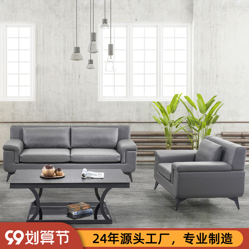 Sofa Kantor Kombinasi Meja Kopi Sederhana Penerimaan Modern Bisnis Kulit Asli Kecil Kantor Tamu Satu Orang Tiga Orang