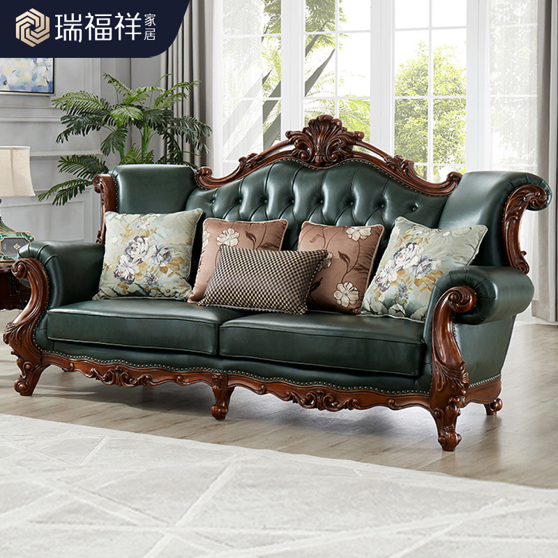 Ruifuxiang furnitur Amerika sofa kayu padat kelas atas villa ruang keluarga apartemen besar sofa kulit Eropa kombinasi N303
