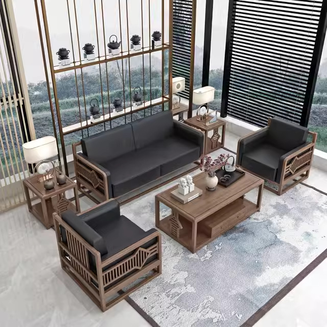 Sofa meja kopi kombinasi kayu solid gaya Tiongkok, sofa modern sederhana ruang tamu bisnis kantor bos