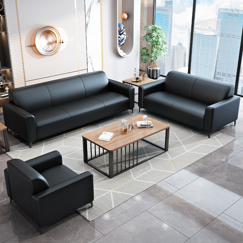 Sofa Kantor Set Meja Kopi Kulit Kucing Bisnis Kantor Kecil Tiga Orang Penerimaan Tamu Sederhana Modern