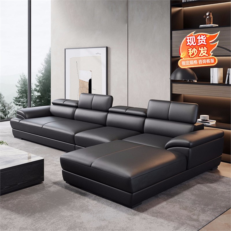 Sofa kulit Italia lapisan pertama kulit sapi kecil apartemen sangat sederhana modern sudut besar kulit hitam sofa ruang tamu kombinasi
