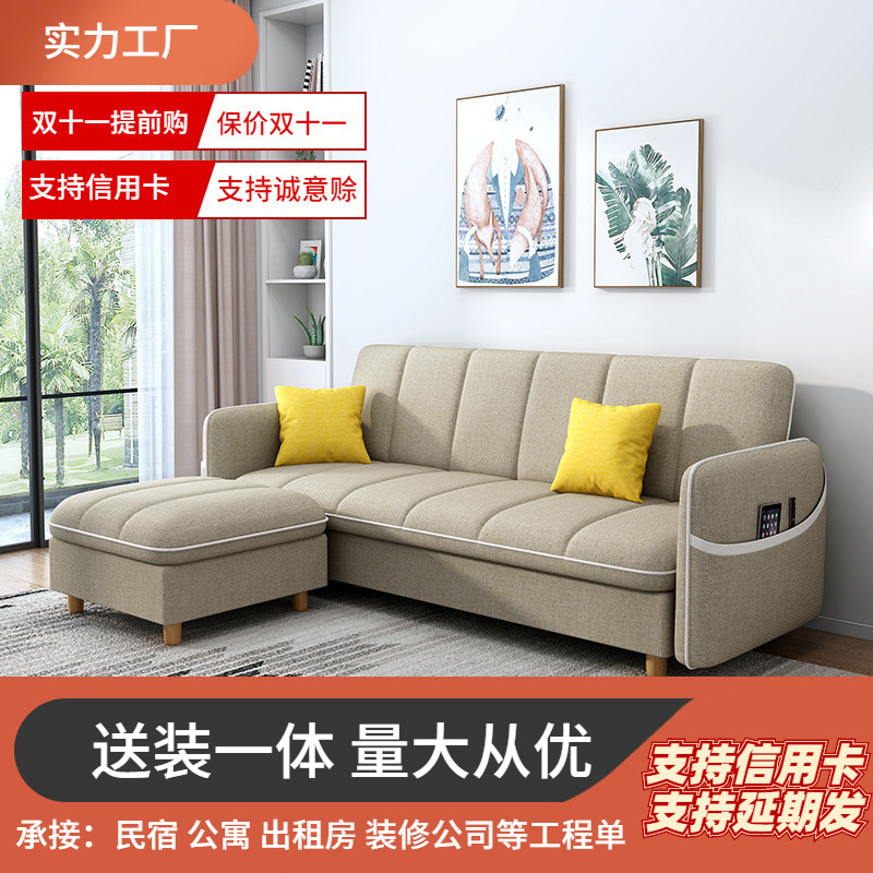 Nordic sofa apartemen kecil, ruang tamu dapat dilipat penggunaan ganda modern minimalis kombinasi tiga orang apartemen, kamar sewa