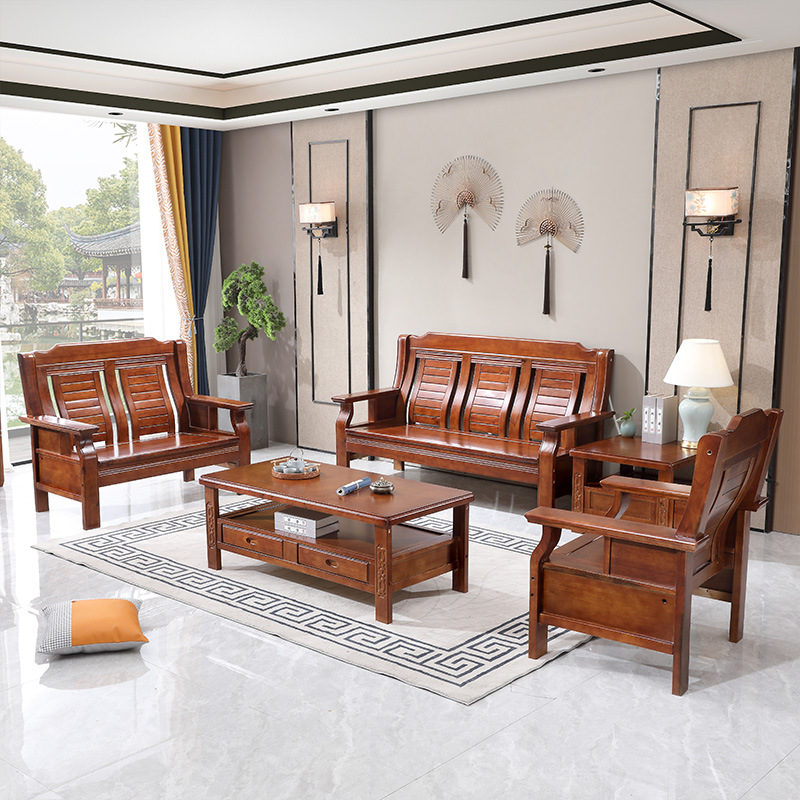 Set Sofa Kayu Solid Kayu Acid Australia Gaya Tiongkok Baru Set Set Lengkap Perabot Villa untuk Unit Besar dan Kecil