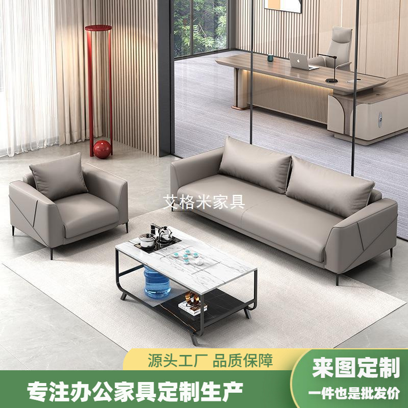 Sofa kulit meja kopi kombinasi sederhana modern bisnis VIP santai area manajer sofa kantor