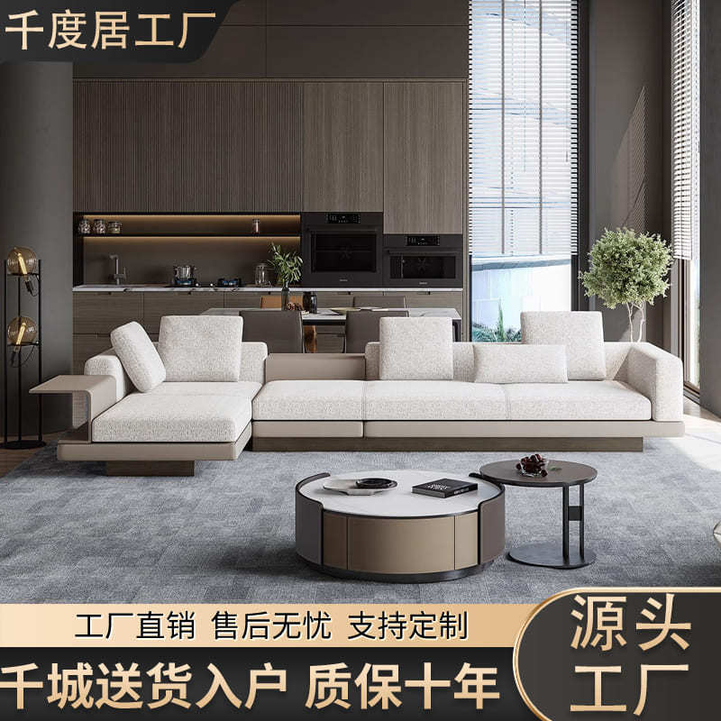 Sofa Kulit Asli Connery Minimalis Gaya Italia Sofa Tipe Rumah Kecil dan Menengah Lantai Datar Superior Mewah Ringan Ruang Tamu Modern