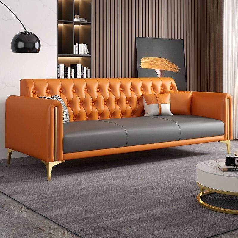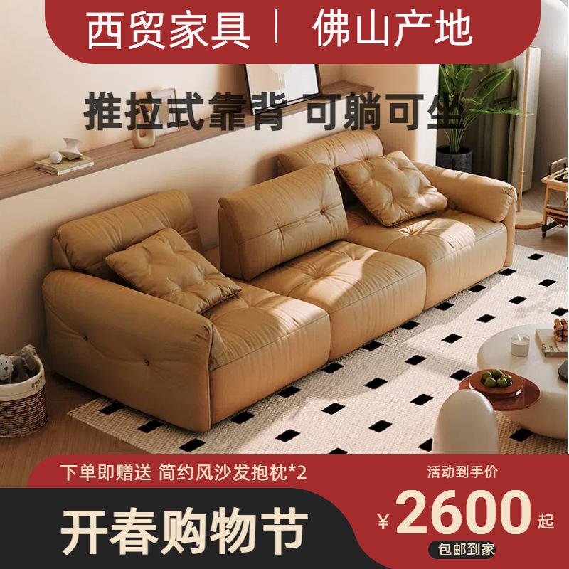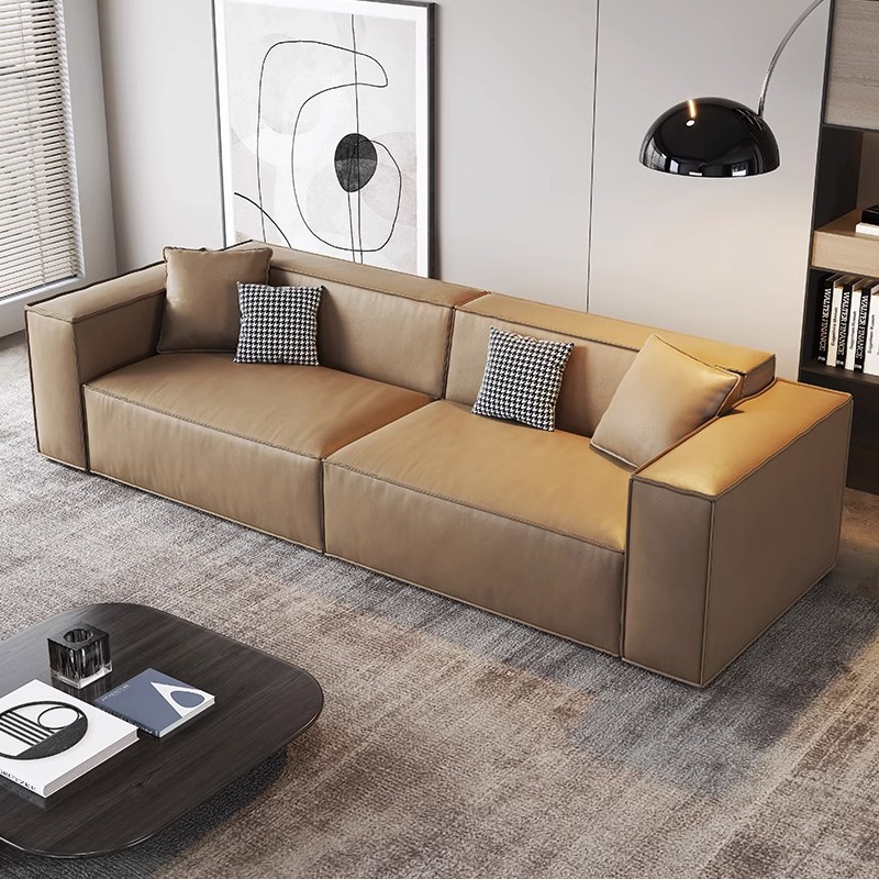Sofa kulit minimalis Italia, ruang tamu modern minimalis kecil apartemen blok tahu baris lurus lapisan pertama sofa kulit sapi kombinasi