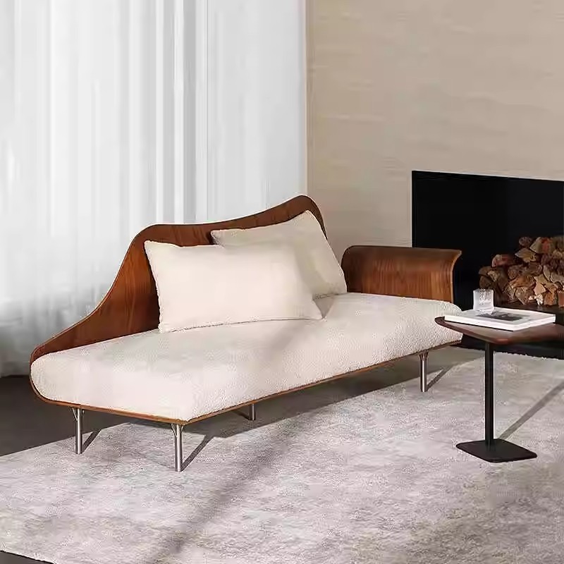 Sofa Kayu Solid Eropa Utara Desainer Kain Bentuk Kecil Kreatif Ruang Tamu Apartemen Kecil Tempat Duduk Triple Mewah Sederhana Modern