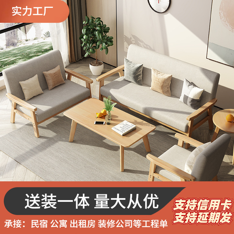 Nordic sofa kain kayu padat sederhana apartemen kecil ruang tamu sederhana kursi modern tiga orang kamar sewa kantor