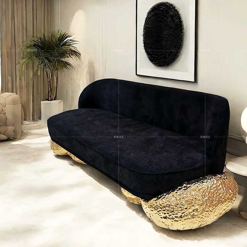Sofa Kain Gaya Italia Kursi Sofa Tembaga Murni Rumah Tangga Tiga Orang Desainer Rumah Tangga Mewah Kemewahan Ringan