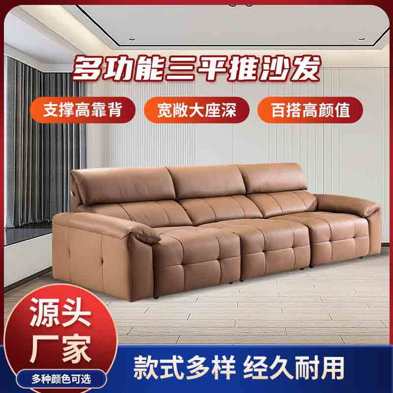 Tempat Tidur Sofa Datar Suara Cerdas Ruang Tamu Sofa Kulit Asli Teleskopik Multifungsi Dapat Disesuaikan Lapisan Kepala Kulit Sapi