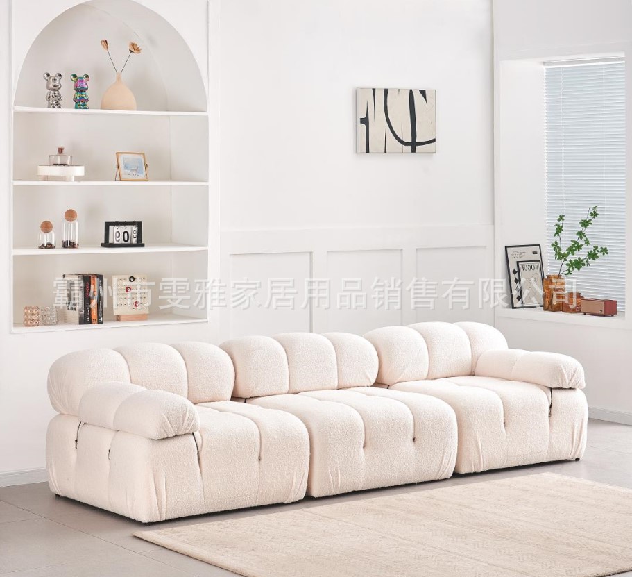 Nordic kain wol domba sofa ruang tamu kecil apartemen desainer mewah ringan persegi tarik gesper modul sofa kombinasi