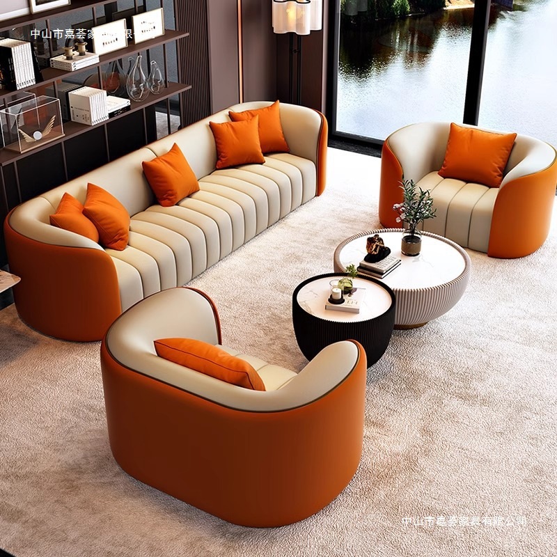 Kombinasi sofa kantor, pertemuan bisnis ruang negosiasi VIP ruang tamu modern sederhana kulit sofa meja kopi
