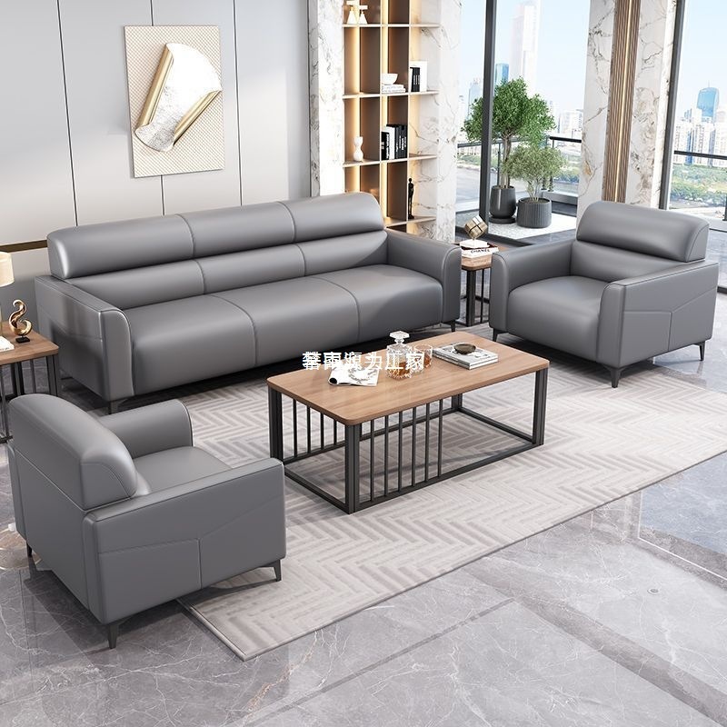 Sofa Kantor Set Meja Kopi Kulit Kucing Bisnis Kantor Kecil Tiga Orang Penerimaan Tamu Sederhana Modern