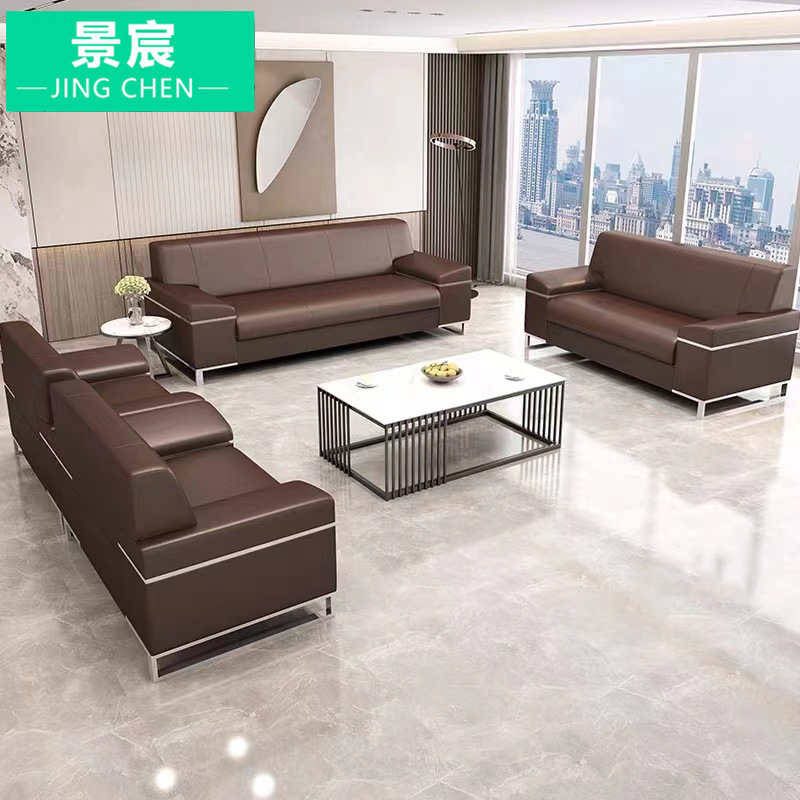 Sofa kulit meja kopi kombinasi sederhana modern bisnis VIP santai area manajer sofa kantor
