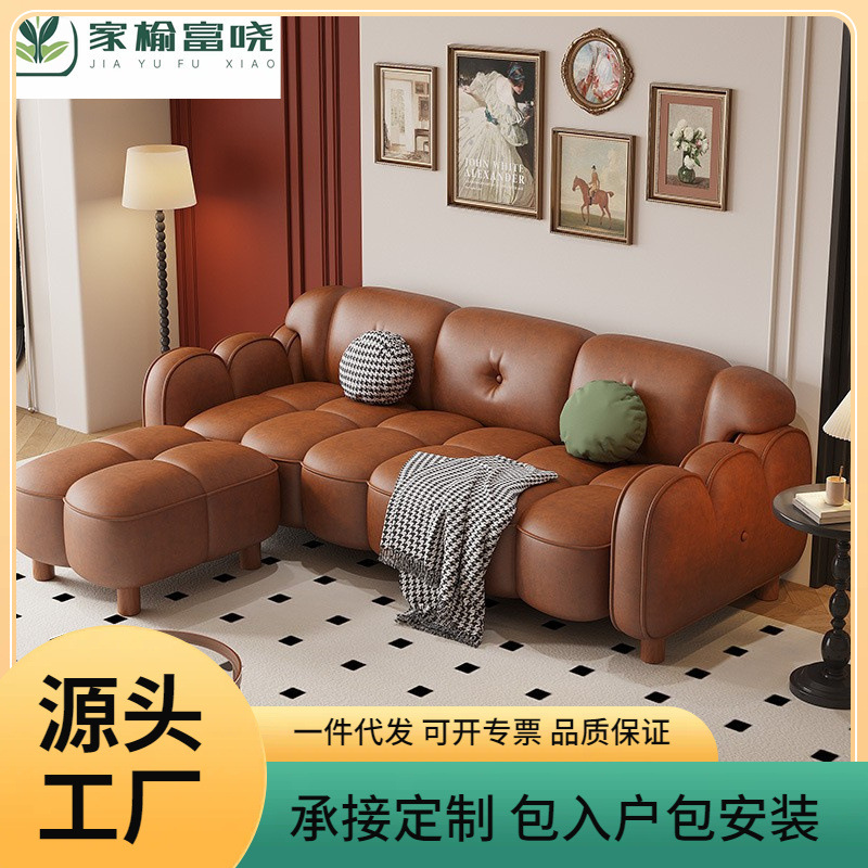 Sofa kulit ruang tamu modern sederhana, lilin minyak kulit baris lurus dapat digerakkan ringan mewah rumah tangga apartemen kecil sofa kulit