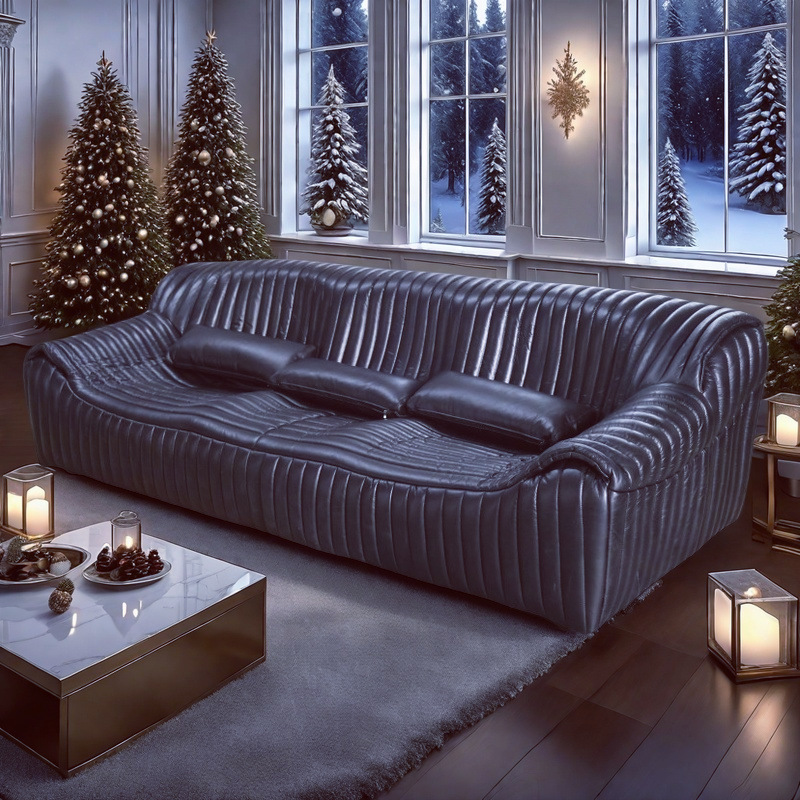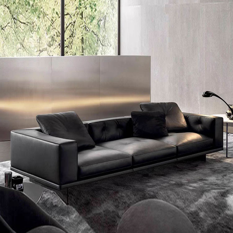 Sofa Fungsional Kulit Sapi Hitam Besar Minimalis Gaya Italia Sofa Seni Bingkai Dasar Kayu Pinus Kulit Sapi Lapisan Atas Atas Ruang Tamu