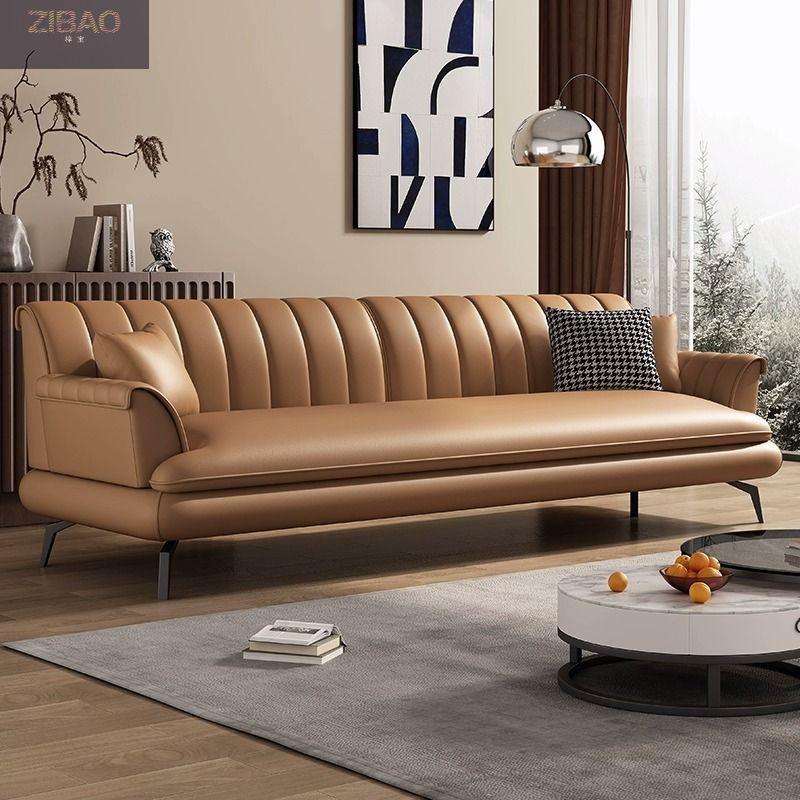 Sofa kulit minimalis Italia, ruang tamu kantor retro coklat modern baris lurus 2023