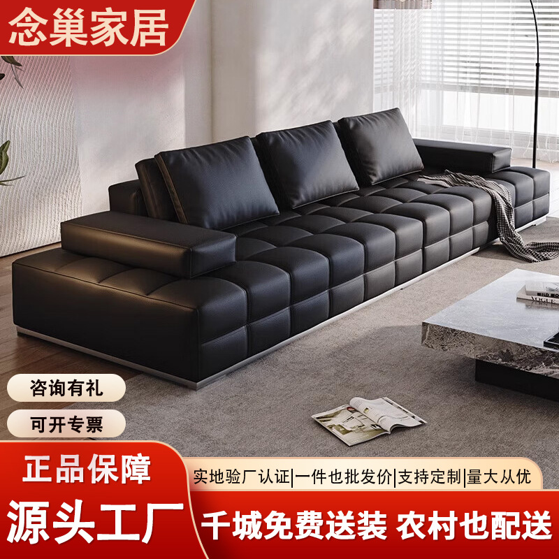 Sofa rumah minimalis Italia sofa sofa sofa baris lurus penawaran khusus perancang kulit elegan kelas atas ruang tamu apartemen besar dan kecil