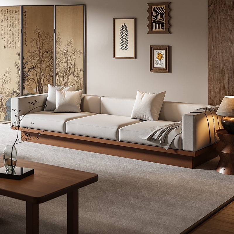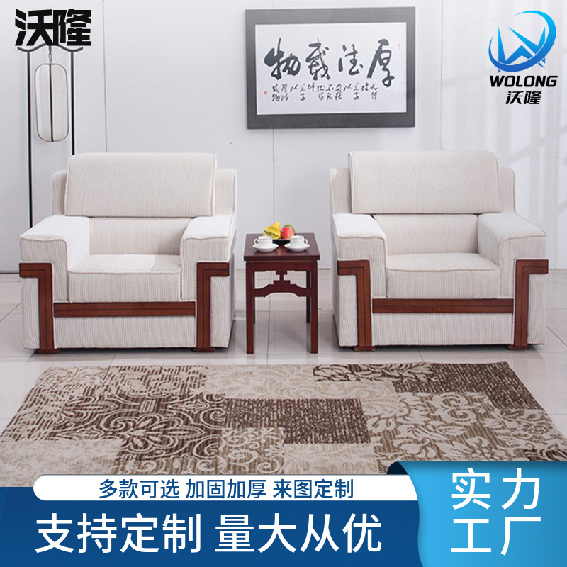 Set Sofa Kantor Komersial Seni Kain Kayu Solid Set Meja Kopi Kombinasi Model Baru Postmodern