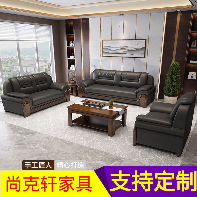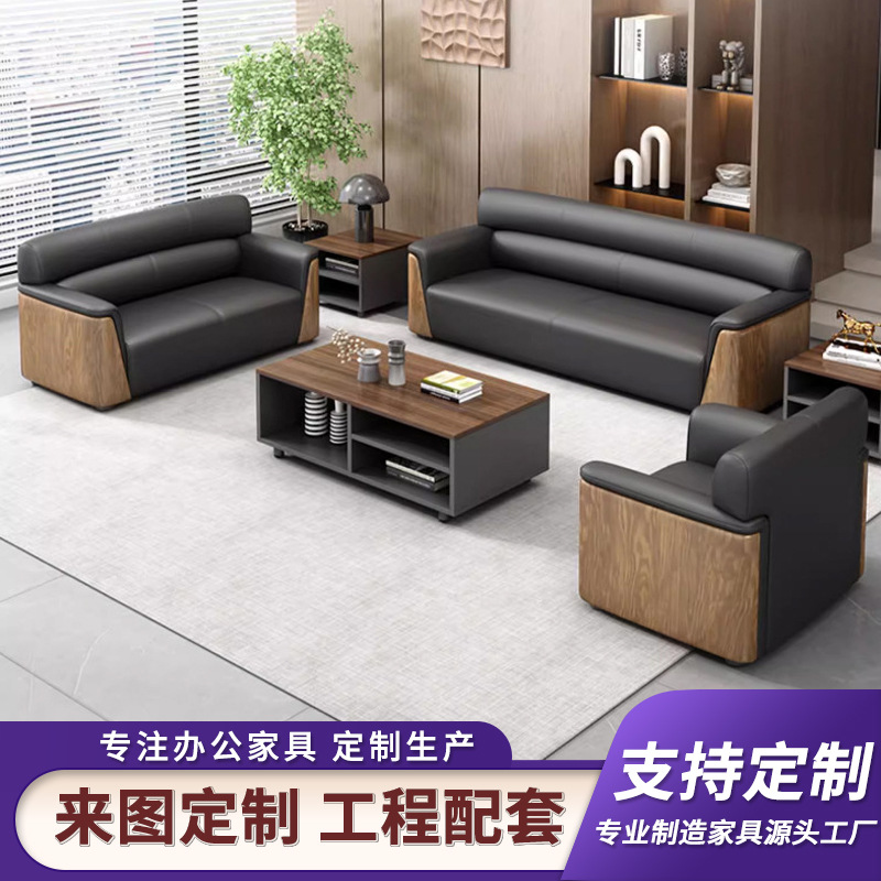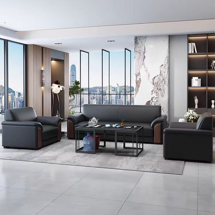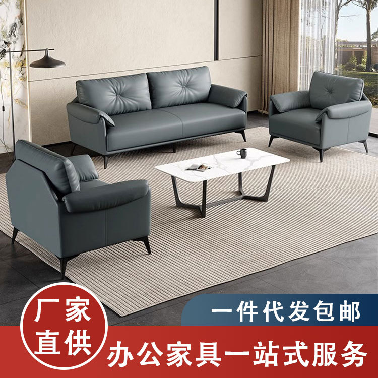 Sofa kantor meja kopi kombinasi resepsi bisnis sofa negosiasi tiga kursi sofa kulit ruang keluarga furnitur