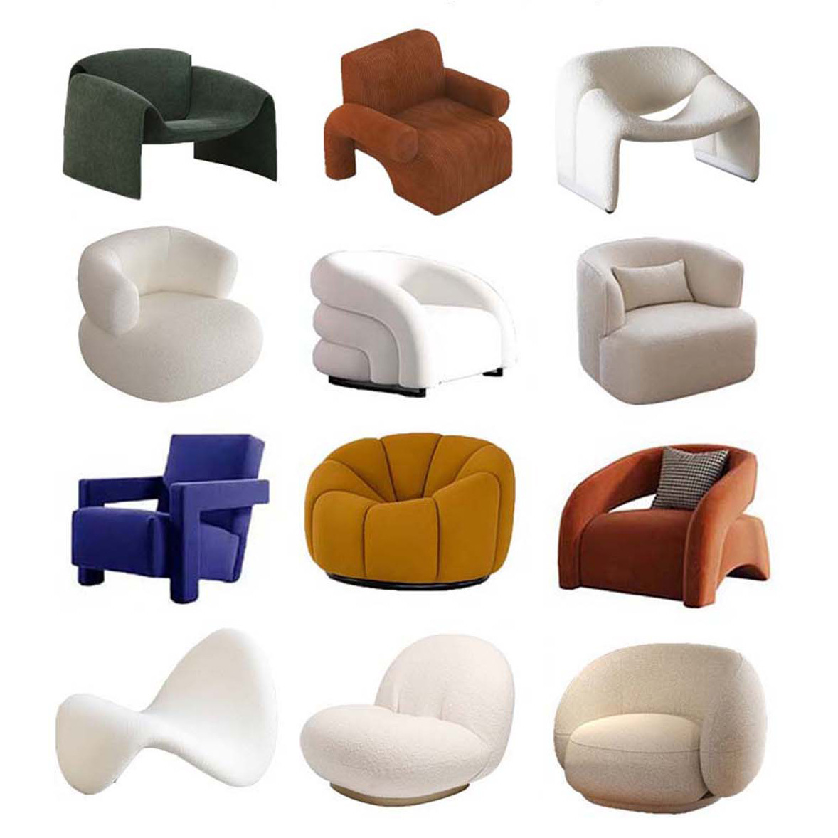 Sofa Kain Bentuk Ekstra Bulu Domba Model Sederhana Gaya Italia Sofa Busur Abu-abu Model Desainer Ruang Tamu Ukuran Besar dan Kecil