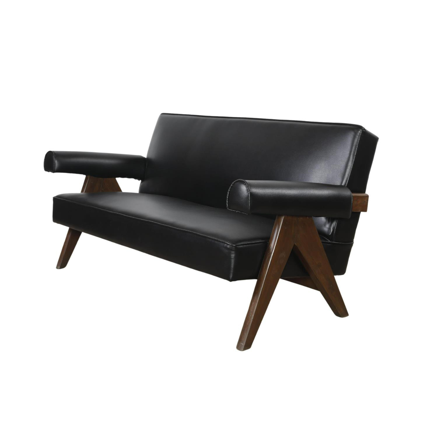 Pierre Jeanneret sofa 2 tempat duduk, sofa kulit ganda bisnis, area resepsi modern Nordik