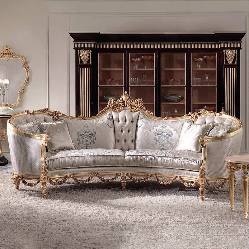 Sofa Kayu Solid Prancis Sofa Kain Italia Kombinasi Sofa Empat Sofa Besar untuk Istana Furnitur Ruang Tamu Villa Mewah