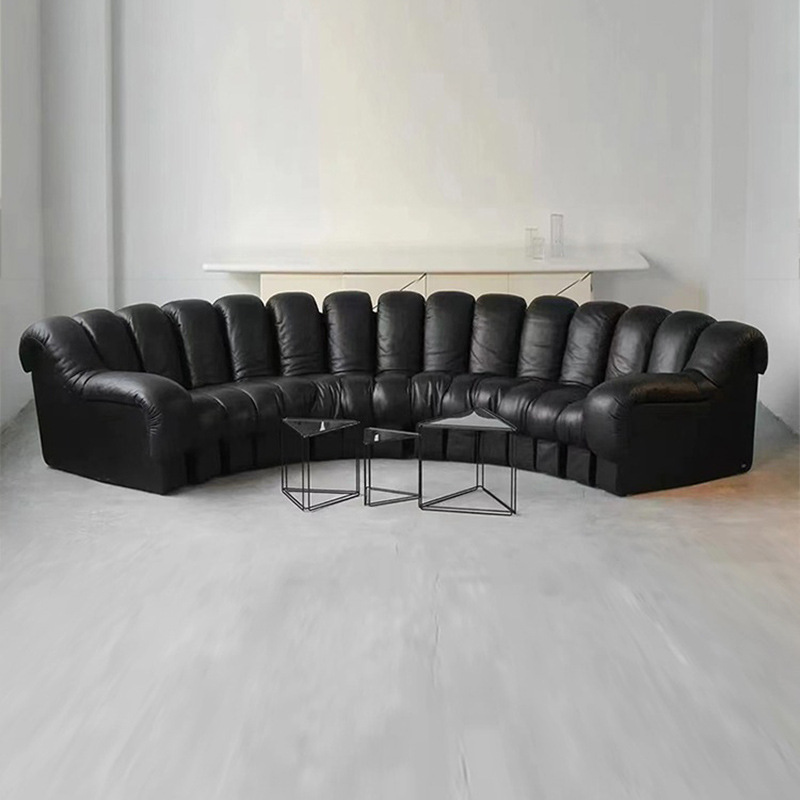 Sofa kulit melengkung Swiss de sede sofa ular, vila ruang tamu modul pengaturan sendiri Ds600 pertengahan kuno merah