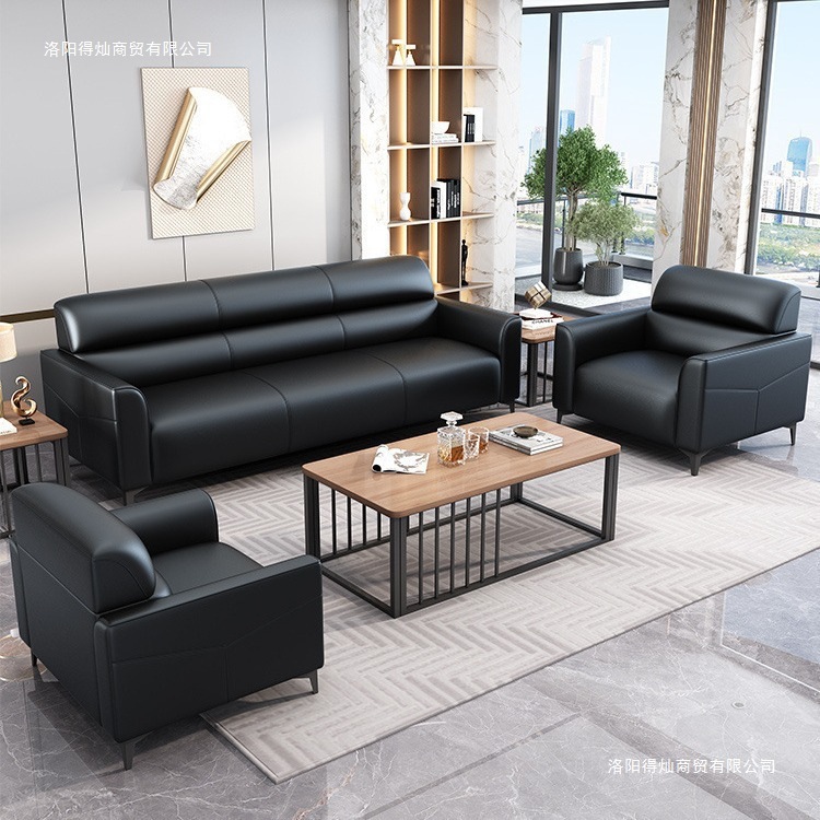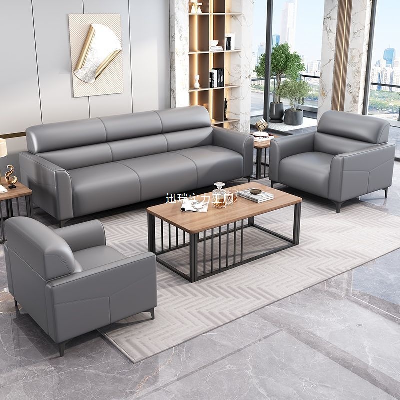 Sofa Kantor Set Kombinasi Meja Kopi Sederhana Modern Penerimaan Bisnis Sofa Tiga Orang Seni Kulit Mewah Ringan