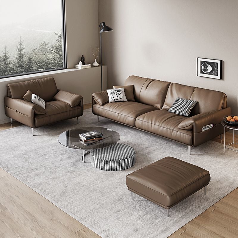 Sofa Kulit Horizon Gaya Eropa Sofa Kulit Sapi Membungkuk Tahu Bentuk Rampai Lapisan Datar Besar Modern Ruang Tamu